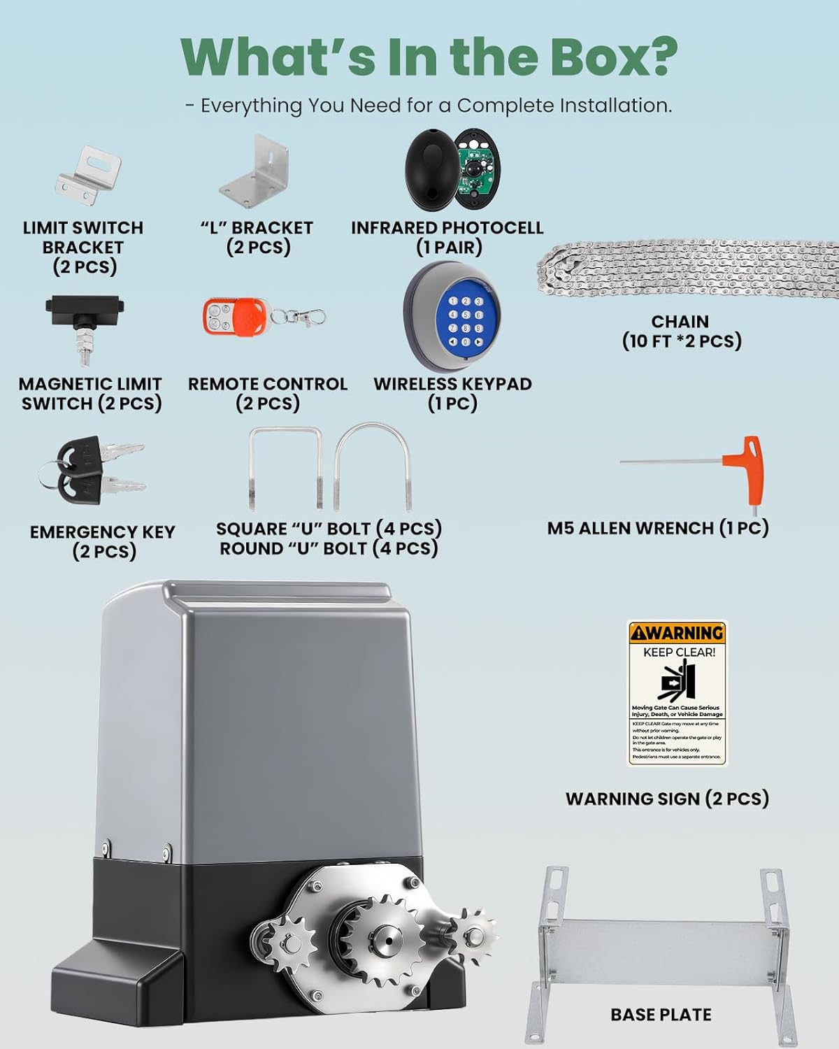 | Style | Gate Opener+Chains+IR Sensor+Keypad |