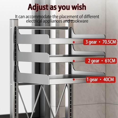 Upgrade your kitchen nization with our Extendable Microwave Oven Rack, a versatile 3-layer storage solution designed to enhance your countertop space. Constructed from high-quality metal, this appliance stand is perfect for housing your essential kitchen gadgets like air fryers, coffee makers, and toasters. Its adjustable design allows you to customize shelf heights, accommodating various appliances with ease. Imagine hosting a dinner party and effortlessly accessing your rice cooker or toaster, all while maintaining a tidy kitchen environment. This rack not only keeps your appliances nized but also adds a contemporary touch to your kitchen, dining room, or even living room decor. The package includes one 3-tier microwave oven rack, complete with all necessary hardware for easy assembly. that this product is not intended for wall mounting. To ensure optimal performance, adhere to the maximum weight limit per shelf. Measuring is done manually, so a slight variation of 1-2cm may occur. Additionally, colors may vary due to lighting conditions and display differences, so please refer to the actual product for the most accurate representation. Elevate your kitchen's functionality and style with our Extendable Microwave Oven Rack today!