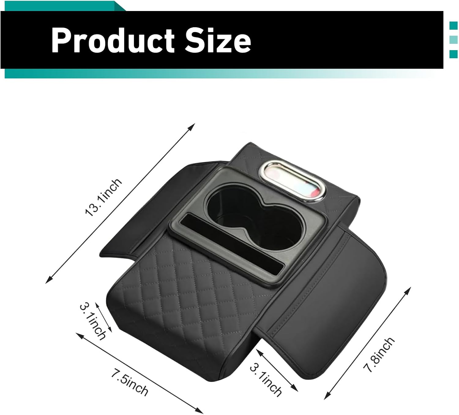 sdidzad Car Arm Rest Cover Pad, Multi-Functional Center Armrest Box Height Increasing Pad with 2 Cup Holder, Tissue Box, Phone Storage Slot, 2 Storage Bags, Universal for Car Organizer (Black)