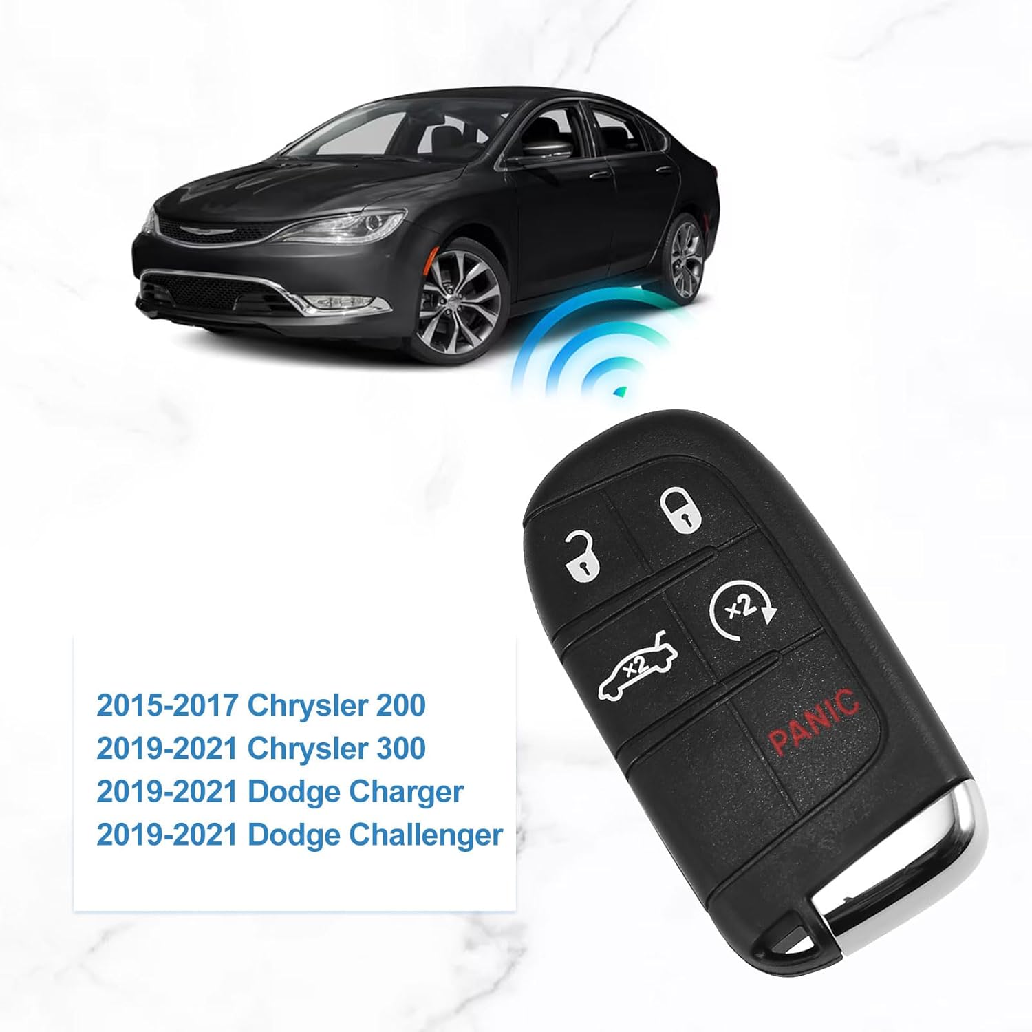 "Specification: FCC ID: M3N-40821302 Part number: 68377534AB Frequency: 433 MHz Compatibility: For 2019-2021 Chrysler 200 For 2019-2021 Chrysler 300 For 2019-2021 Dodge Charger For 2019-2021 Dodge Challenger Package Includes: One aftermarket remote key."