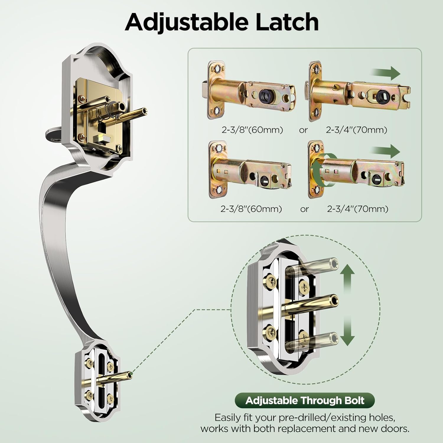| Additional Features | Classic Door Lock with Handle, Reversible for Right and Left Handed, Adjustable Throughbolt |
