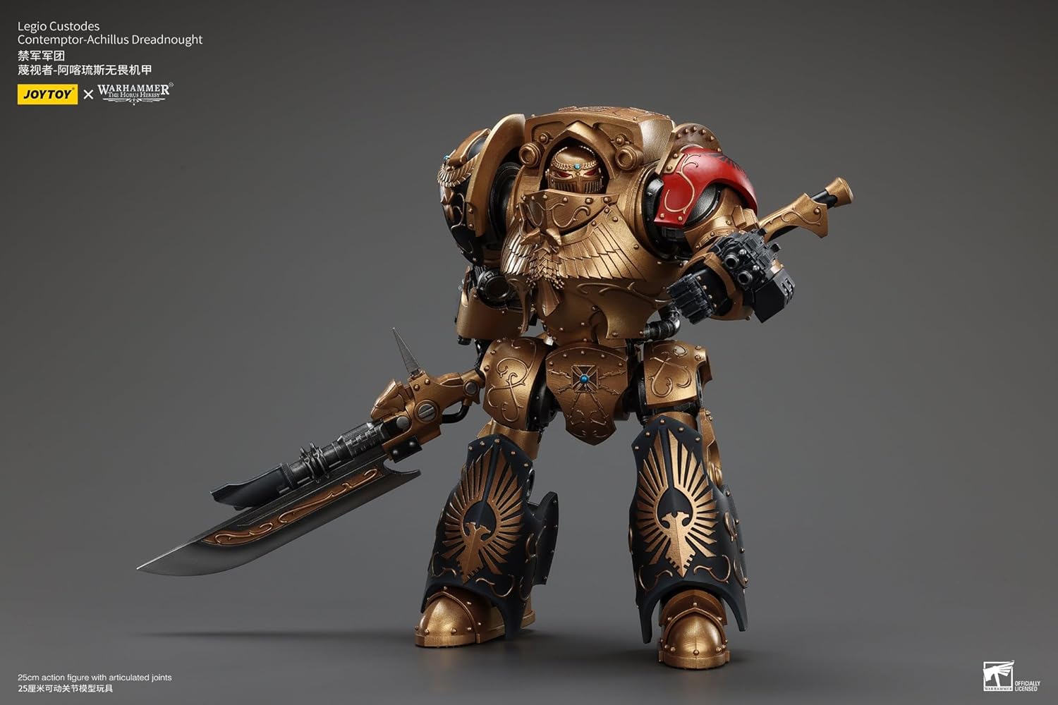 From Joytoy (Beijing) Tech Devco. The JoyToy WH40K Legio Custodes Contemptor-Achillus Dreadnought is a masterfully crafted figure showcasing the elegance and lethality of the Emperor’s finest. With its intricate detailing and iconic spear weaponry, this 25cm collectible brings the Warhammer 40k universe to life. A must-have for enthusiasts of the Custodian Guard!